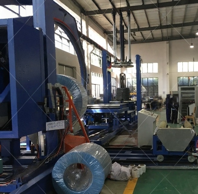 上料定位:通过液压升降台自动承接生产线下来的高碳钢丝卷,定心机构精准固定卷芯,避免缠绕时卷料偏移。