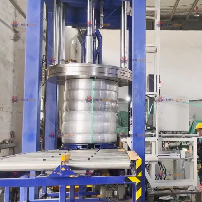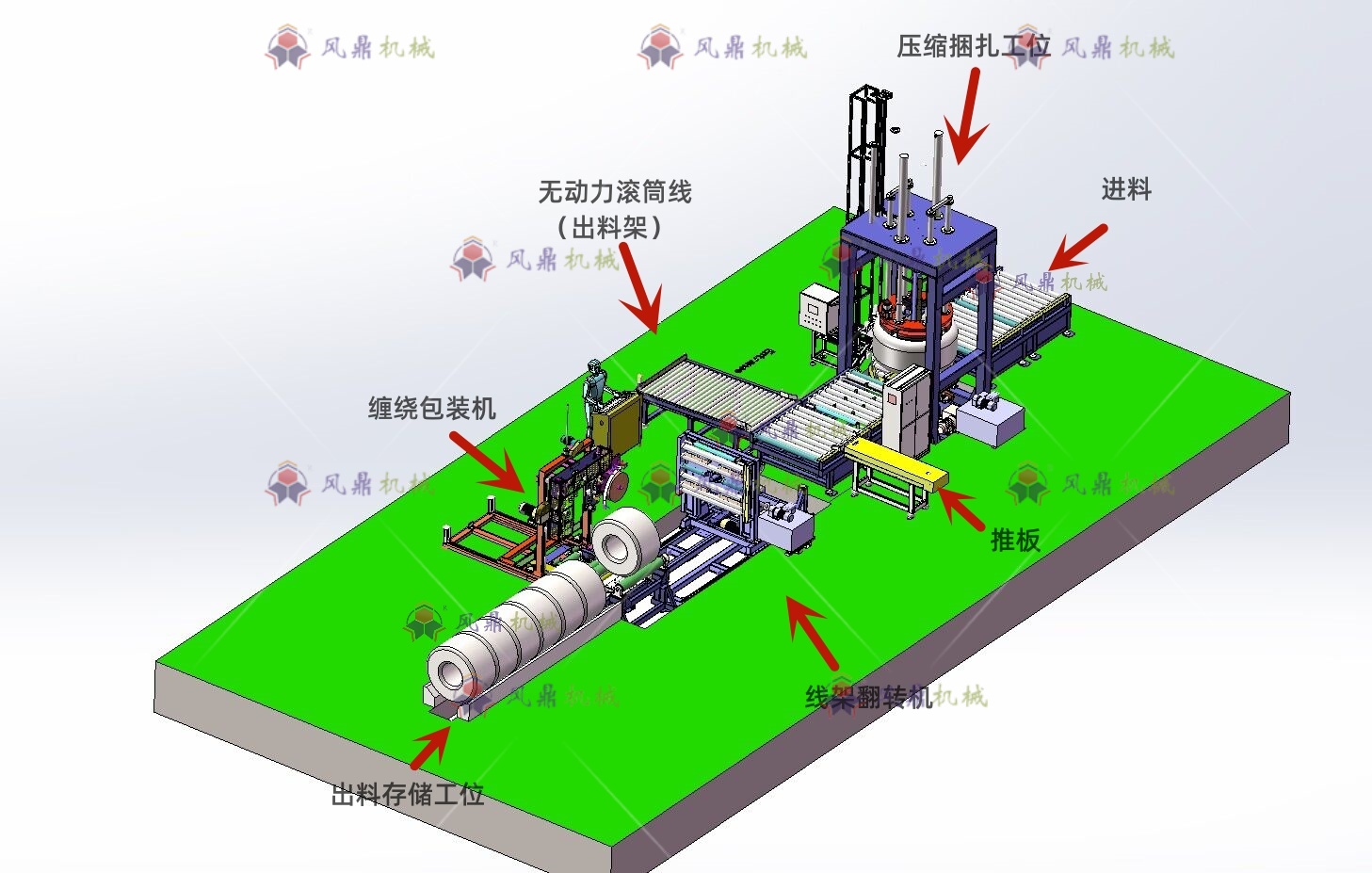 材质兼容:针对高碳钢丝硬度高、易刮伤特性,采用耐磨聚乙烯缠绕膜 + 柔性张力调节,避免包装过程中钢丝表面损伤。